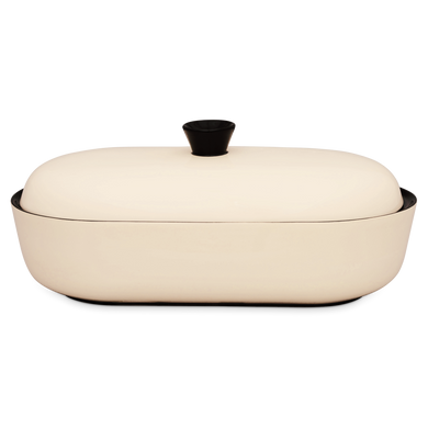 The ceramic bread pans from Hedwig Bollhagen have clear advantages over conventional containers, which are often made of wood. Wood absorbs moisture easily. And plastic containers tend to sweat in hot weather. Not so our bread pots. Two small openings at the bottom regulate the necessary supply of fresh air so that the sourdough stays fresh for a long time. Apart from the practical component, HB bread pans are above all decorative. Whether on the dining table or on the shelf, the bread pans stand out. So you are not only showing foresight, but also taste with your bread pot.