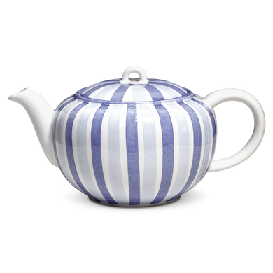 Fayence weiß - blaue und hellblaue Streifen - Glasur glänzend