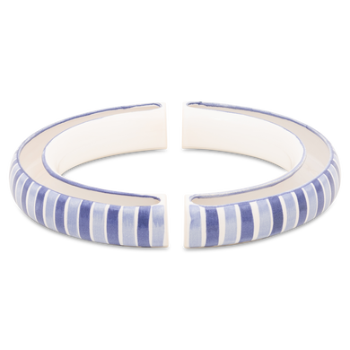 Fayence weiß - blaue und hellblaue Streifen - Glasur glänzend