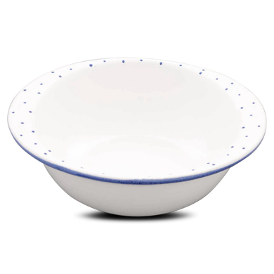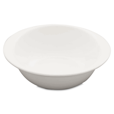 Los empleados de la fábrica de cerámica de Marwitz han bautizado cariñosamente como «cuenco de orejas» el cuenco para sopa de Hedwig Bollhagen con el número de modelo «591». El motivo es, sin duda, la característica lengüeta elíptica que sobresale unos dos centímetros hacia fuera a cada lado del cuenco y que, al mismo tiempo, hace las veces de asa. Una cosa es segura: gracias a este borde fácil de agarrar, nadie se quemará las manos al servir. Ya sea para caldo o gachas de sémola, con una capacidad de 0,3 litros, este cuenco de sopa, que pesa solo 250 gramos, tiene además el tamaño perfecto. Más hondo que un plato, más plano que un cuenco, este cuenco, con un diámetro de 16 centímetros y una altura de cinco centímetros, es tres veces más ancho que alto.