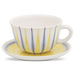 Fayence weiß gelbe Bänder und blaue Striche Glasur glänzend