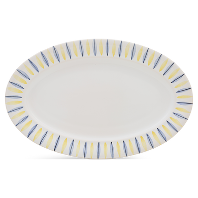 La gran bandeja ovalada HB 507B es un auténtico reclamo en cualquier mesa y ofrece un amplio espacio para sus platos estrella. Con una longitud de 31,5 cm y una anchura de 20 cm, es ideal para asados, platos de pescado, guarniciones generosas, pasteles y muchas otras delicias. Gracias a su perfil plano de 2 cm de altura, permite presentar los platos con elegancia y servirlos con facilidad. Fabricada a mano en los talleres de Hedwig Bollhagen, esta bandeja combina la artesanía tradicional con una elegancia atemporal. Ya sea para ocasiones festivas o para el uso diario, aporta un toque exclusivo a cualquier plato y se convierte en un complemento indispensable en su mesa.
