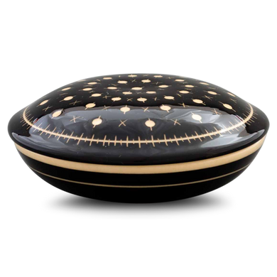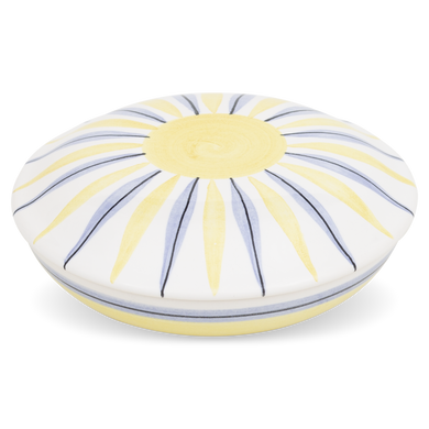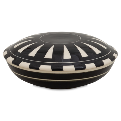 La lata de Hedwig Bollhagen, con el número de modelo «503A», da vida al ambiente. Este juego de dos piezas se caracteriza por su recipiente con forma de cuenco y su tapa redondeada en la parte superior. La artista ceramista ha prescindido de asas o tiradores. Con un diámetro de doce centímetros y una altura de cinco, la lata es más del doble de ancha que de alta. Y con una capacidad de 0,1 litros, esta lata de 240 gramos de peso se encuentra más bien entre las pequeñas, pero no por ello menos elegantes, de la gama. Ya sean pendientes, broches o gemelos, la caja de cerámica es el lugar perfecto para guardar las pequeñas joyas del día a día.