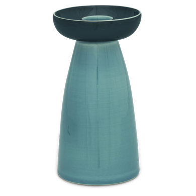 El candelabro de Hedwig Bollhagen, con el número de modelo «216», ilumina el ambiente del hogar y perfecciona la decoración de la mesa con su elegancia atemporal. Este candelabro de cerámica, que pesa 350 gramos, se caracteriza por un cuerpo cónico que se estrecha desde una base ancha y estable y que, a su vez, se ensancha hacia arriba hasta formar un portavelas con una característica forma de cuenco. Con un diámetro de 8 centímetros, este candelabro de 15 centímetros de altura es casi el doble de alto que de ancho y, gracias a sus armoniosas proporciones, siempre aporta un toque especial. El candelabro 216, hecho a mano, es un producto de calidad de los talleres de cerámica de Marwitz que se integra con mucho gusto en una gran variedad de ambientes decorativos.