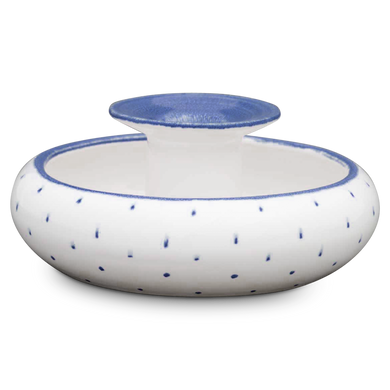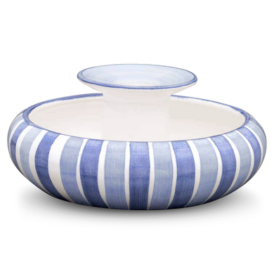 Fayenza blanca - rayas azules y celestes - vidriado brillante