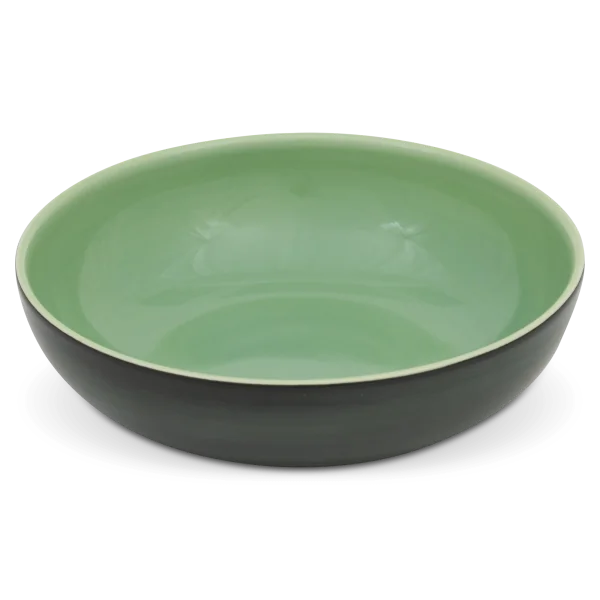 El cuenco con el número de modelo «198B grande» de Hedwig Bollhagen se conoce en la fábrica de cerámica de Marwitz como «cuenco para naranjas». Junto con su hermana pequeña, el modelo 198A, forma un elegante conjunto. Sus características distintivas son la base ovalada y cilíndrica, que se eleva unos dos centímetros, y el cuenco, también ovalado, de 20 centímetros de ancho, que se ensancha ligeramente hacia los bordes. Su sencilla forma cóncava-convexa le confiere una elegante ligereza. Su sencillez la hace muy versátil. En su cuerpo plano se pueden presentar con estilo tanto frutas como productos cortados, como mozzarella, jamón, queso o incluso ensaladas. Sin embargo, su elegante forma la eleva por encima de cualquier función y convierte su entorno en una experiencia especial, incluso cuando se utiliza de forma individual.