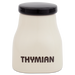Die Gewürzdose „Thymian“ mit der Formnummer “HB 556” ist perfekt geeignet, um getrockneten Thymian stilvoll aufzubewahren und sein volles Aroma zu bewahren. Mit einer Höhe von 8,5 cm und einem Volumen von 0,13 Litern passt sie ideal in jede Küche und schützt den Inhalt dank des schwarzen, dicht schließenden Deckels zuverlässig vor Feuchtigkeit. Der cremefarbene Korpus mit der klaren Aufschrift „THYMIAN“ sorgt dabei für eine elegante und praktische Aufbewahrung. Diese handliche Dose gibt es auch für viele weitere Gewürze wie Curry, Kümmel oder Muskat, sodass Sie Ihre gesamte Gewürzsammlung stilvoll und einheitlich aufbewahren können. Für größere Mengen oder andere Vorräte wie Kaffee, Tee, Kekse oder Reis bietet sich die größere Variante HB 595 an – ideal, um eine harmonische Ordnung in Ihrer Küche zu schaffen. Seit 1934 stehen die Hedwig Bollhagen Werkstätten für handgefertigte Keramik in höchster Qualität und zeitlosem Design.