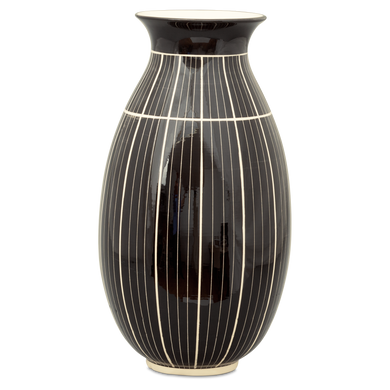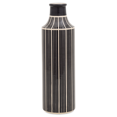 El frasco de Hedwig Bollhagen, con el número de modelo «533», no solo es un elegante centro de mesa que llama la atención sobre mesas, estanterías, manteles y demás. Con una altura de 15 centímetros y una anchura de 8 centímetros, este recipiente de cerámica hecho a mano resulta ideal como elegante jarrón para versátiles arreglos florales, pero también aporta un toque especial sin flores y para otros usos diversos. Se caracteriza por su cuerpo de forma elíptica con una capacidad de 380 ml, que se estrecha hacia un cuello rectilíneo y termina en un borde que fluye ligeramente hacia fuera. El elegante frasco 533, que pesa 200 gramos, es una pieza única hecha a mano que, con sus armoniosos contornos, realza cualquier ambiente.