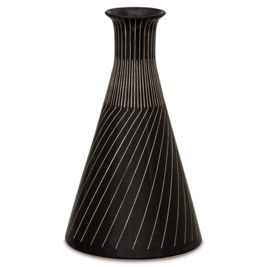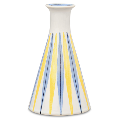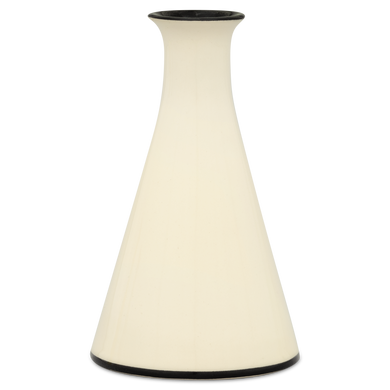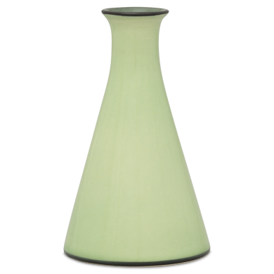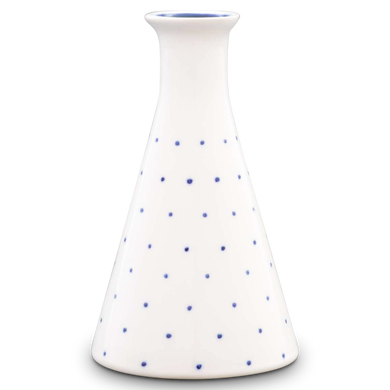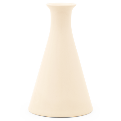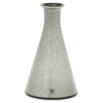 El frasco de Hedwig Bollhagen, con el número de modelo «539», destaca por su carácter decorativo moderno, que aporta un ambiente distinguido a cualquier estancia. Con una altura de 13 centímetros y una anchura de 8 centímetros, este recipiente de cerámica hecho a mano resulta ideal como elegante jarrón para versátiles arreglos florales, pero también aporta un toque especial sin flores, como frasco para aceites esenciales. Es característico su cuerpo piramidal que se eleva hacia arriba, con una capacidad de 150 ml, que se estrecha hasta formar un cuello estrecho y termina en un borde que fluye hacia fuera. El elegante frasco 539, que pesa 160 gramos, es una pieza única hecha a mano que, con sus armoniosos contornos, realza de forma llamativa cualquier decoración de mesa.