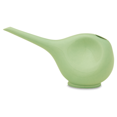 The watering can by Hedwig Bollhagen with the form number "766" not only waters the flowers but also impresses with its simple, plain, and functional shape. Characteristic is the bulbous-oval body with the concavely pressed, grippy side walls and the round opening in between for filling the watering can. The ceramic artist has opted out of a handle. The long, straight spout harmoniously completes the design. With a diameter of eleven centimeters and a height of 14 centimeters, the 470-gram ceramic watering can is almost as tall as it is wide. One thing is certain, this timeless watering can is the eye-catcher on any windowsill, just like its little sister (HB 766A), which offers the same craftsmanship in a compact format. For a stylish addition to your home and plant decoration, these unique watering cans can be wonderfully combined with other handmade pieces from the Hedwig Bollhagen workshops: Make a statement with a Vase floral accents or create with an artistic flower ring a harmonious overall picture. Also noble Bowls or stylish Candle holders fit perfectly into the ensemble.