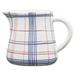 Fayenza blanca con líneas azules y rojas esmalte brillante