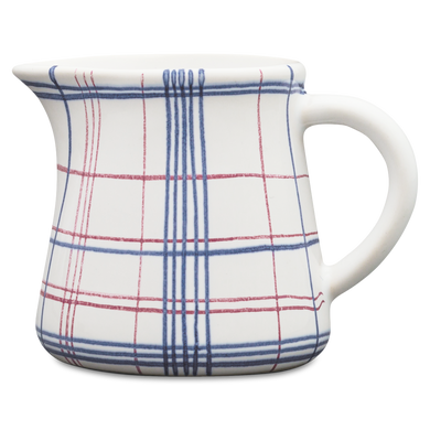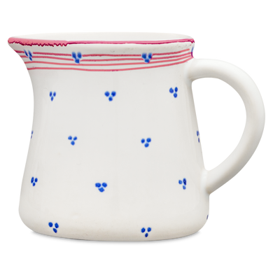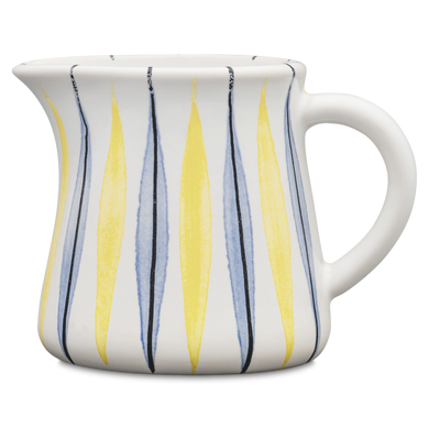 La clásica jarra para leche de Hedwig Bollhagen, con el número de modelo «5510», cautiva por su armonioso diseño retro y sus contornos nítidos. Esta jarra artesanal, fabricada en cerámica ligera de 100 gramos, se caracteriza por su cuerpo cilíndrico, que se ensancha hasta formar un borde curvado con un pequeño pico que evita las salpicaduras. El asa ancha, ligeramente cóncava y redondeada, acentúa el carácter vintage y garantiza que la jarra de cerámica, de 6,5 centímetros de alto y ancho, se sujete con seguridad en la mano. Con un volumen de 120 ml, la jarra 5510, algo más pequeña, es perfecta para servir con estilo nata y leche para el café o el té, pero también destaca en muchos otros usos.
