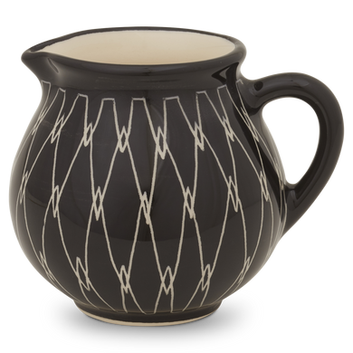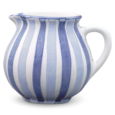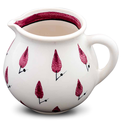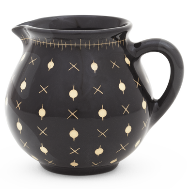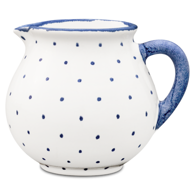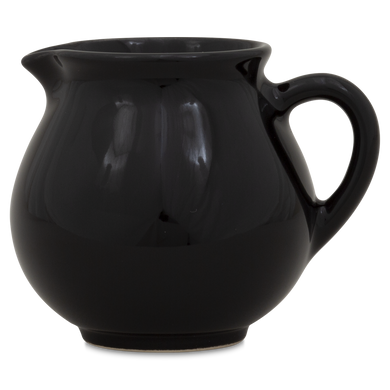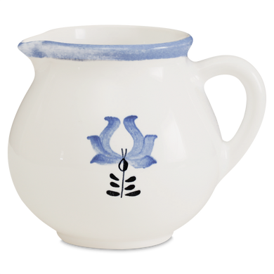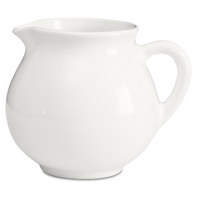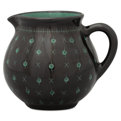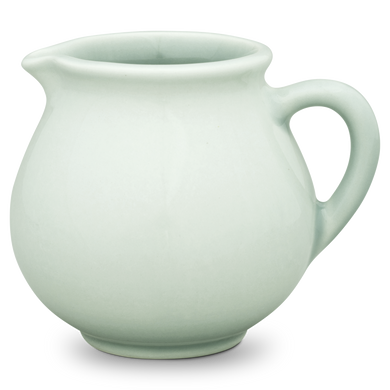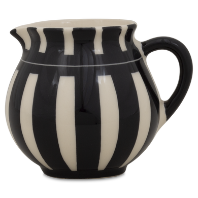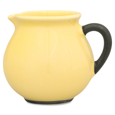 La jarra para nata de Hedwig Bollhagen, con el número de modelo «1065C», recuerda, con su diseño curvilíneo y nostálgico, a una jarrita de leche retro de los buenos viejos tiempos. Al mismo tiempo, la forma de esta pieza de cerámica, que pesa 130 gramos, no resulta en absoluto anticuada gracias a sus contornos clásicos y sencillos. La característica forma abombada de la jarra, de 7 centímetros de alto y ancho, se estrecha hacia arriba hasta un borde de líneas suaves, en el que se encuentra la pequeña boca antigoteo. El asa elíptica y curvada de este vertedor de nata, fabricado en cerámica maciza, redondea armoniosamente el diseño. Con una capacidad de 130 ml, el vertedor 1065C, hecho a mano, es ideal como recipiente de tamaño mediano para la mesa del café y complementa muchas series de vajilla diferentes con un toque elegante.