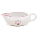La jarrita para la nata de Hedwig Bollhagen, con el número de modelo «503», recuerda un poco a un capullo de loto o incluso a la lámpara mágica de Aladino. Por eso, los empleados de la fábrica de cerámica de Marwitz la bautizaron cariñosamente como la jarrita para la nata «Dschinni». Su característica principal es el cuerpo bastante plano y abombado. Con un diámetro de nada menos que doce centímetros, este recipiente, de solo cuatro centímetros y medio de altura, es más ancho que alto. Con una capacidad de 0,15 litros, este recipiente, que pesa 190 gramos, no es ni demasiado pequeño ni demasiado grande. El generoso asa y la boca, situada diametralmente opuesta y curvada hacia fuera, con su boquilla antigoteo, completan armoniosamente el diseño.