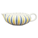 La jarrita para la nata de Hedwig Bollhagen, con el número de modelo «503», recuerda un poco a un capullo de loto o incluso a la lámpara mágica de Aladino. Por eso, los empleados de la fábrica de cerámica de Marwitz la bautizaron cariñosamente como la jarrita para la nata «Dschinni». Su característica principal es el cuerpo bastante plano y abombado. Con un diámetro de nada menos que doce centímetros, este recipiente, de solo cuatro centímetros y medio de altura, es más ancho que alto. Con una capacidad de 0,15 litros, este recipiente, que pesa 190 gramos, no es ni demasiado pequeño ni demasiado grande. El generoso asa y la boca, situada diametralmente opuesta y curvada hacia fuera, con su boquilla antigoteo, completan armoniosamente el diseño.