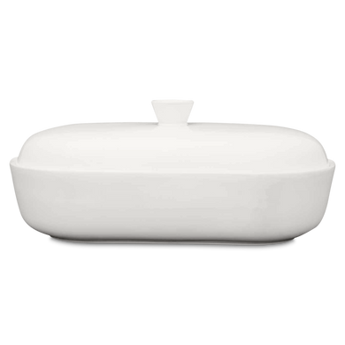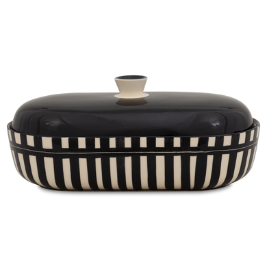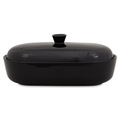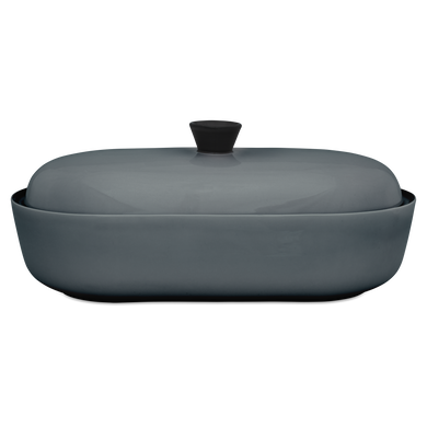 La cazuela de barro 482 es un auténtico clásico del diseño de la casa Hedwig Bollhagen. Fabricada a mano y con un estilo auténtico, destaca por su aspecto atemporal, moderno y elegante. Esta cazuela de barro es el centro de todas las miradas en cualquier mesa bien puesta. Da igual si se preparan verduras o carne, se hornea pan o se cocinan otros platos deliciosos en esta práctica cazuela. Con esta cazuela de cerámica, cualquier receta sale bien a la primera. Con una altura de 14 centímetros, 20 centímetros de ancho y 35 centímetros de diámetro, la cazuela de barro es manejable y versátil a la vez. Ya sea para el sustancioso asado dominical o para cocinar al vapor, con poca grasa, platos ricos en vitaminas. La cazuela de barro se puede utilizar para hornear pan, pero también como recipiente para guardar alimentos. La cazuela de barro está disponible en diferentes y elegantes diseños. En blanco clásico, el modelo con la decoración 000 de la colección Fayence encaja visualmente en cualquier cocina. También de la serie Fayence procede la cazuela de barro 482 con la decoración 137. Con sus líneas claras y su estilo rústico en azul y blanco, es representativo del estilo práctico y elegante de la cerámica de los talleres HB. La decoración 050-1 de la colección Varius evoca inmediatamente asociaciones con la legendaria Bauhaus. Clara, sobria y de estilo atemporal, esta hermosa fuente de cerámica es un auténtico reclamo visual.
