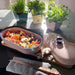 La cazuela de barro 482 es un auténtico clásico del diseño de la casa Hedwig Bollhagen. Fabricada a mano y con un estilo auténtico, destaca por su aspecto atemporal, moderno y elegante. Esta cazuela de barro es el centro de todas las miradas en cualquier mesa bien puesta. Da igual si se preparan verduras o carne, se hornea pan o se cocinan otros platos deliciosos en esta práctica cazuela. Con esta cazuela de cerámica, cualquier receta sale bien a la primera. Con una altura de 14 centímetros, 20 centímetros de ancho y 35 centímetros de diámetro, la cazuela de barro es manejable y versátil a la vez. Ya sea para el sustancioso asado dominical o para cocinar al vapor, con poca grasa, platos ricos en vitaminas. La cazuela de barro se puede utilizar para hornear pan, pero también como recipiente para guardar alimentos. La cazuela de barro está disponible en diferentes y elegantes diseños. En blanco clásico, el modelo con la decoración 000 de la colección Fayence encaja visualmente en cualquier cocina. También de la serie Fayence procede la cazuela de barro 482 con la decoración 137. Con sus líneas claras y su estilo rústico en azul y blanco, es representativo del estilo práctico y elegante de la cerámica de los talleres HB. La decoración 050-1 de la colección Varius evoca inmediatamente asociaciones con la legendaria Bauhaus. Clara, sobria y de estilo atemporal, esta hermosa fuente de cerámica es un auténtico reclamo visual.
