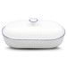 La cazuela de barro 482 es un auténtico clásico del diseño de la casa Hedwig Bollhagen. Fabricada a mano y con un estilo auténtico, destaca por su aspecto atemporal, moderno y elegante. Esta cazuela de barro es el centro de todas las miradas en cualquier mesa bien puesta. Da igual si se preparan verduras o carne, se hornea pan o se cocinan otros platos deliciosos en esta práctica cazuela. Con esta cazuela de cerámica, cualquier receta sale bien a la primera. Con una altura de 14 centímetros, 20 centímetros de ancho y 35 centímetros de diámetro, la cazuela de barro es manejable y versátil a la vez. Ya sea para el sustancioso asado dominical o para cocinar al vapor, con poca grasa, platos ricos en vitaminas. La cazuela de barro se puede utilizar para hornear pan, pero también como recipiente para guardar alimentos. La cazuela de barro está disponible en diferentes y elegantes diseños. En blanco clásico, el modelo con la decoración 000 de la colección Fayence encaja visualmente en cualquier cocina. También de la serie Fayence procede la cazuela de barro 482 con la decoración 137. Con sus líneas claras y su estilo rústico en azul y blanco, es representativo del estilo práctico y elegante de la cerámica de los talleres HB. La decoración 050-1 de la colección Varius evoca inmediatamente asociaciones con la legendaria Bauhaus. Clara, sobria y de estilo atemporal, esta hermosa fuente de cerámica es un auténtico reclamo visual.