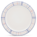 Fayenza blanca con líneas azules y rojas esmalte brillante