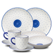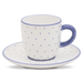 Fayenza blanca con puntos azules y acabado esmaltado brillante