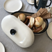 La lata con el número de modelo «481» de Hedwig Bollhagen es conocida entre los empleados de la fábrica de cerámica de Marwitz también como «recipiente para el pan». Este conjunto de dos piezas —recipiente y tapa—, de un diseño sencillo y atemporal, ya marcó el diseño cotidiano en la antigua RDA y hoy en día está siendo redescubierto por los amantes del diseño. Son característicos el cuerpo rectangular-ovalado y abombado de la lata y la tapa abombada hacia arriba con el asa cónica adornada. Con una altura de 14,5 centímetros, una anchura de 20 centímetros y un volumen de dos litros y medio, el recipiente para pan 481 se cuenta ya entre las piezas de cerámica de mayor tamaño de la gama de Hedwig Bollhagen. Ya sea pan de molde, baguette o pan rústico, este elegante panero ofrece un lugar de conservación duradero e higiénico y no puede faltar en la cocina de ningún amante del diseño.