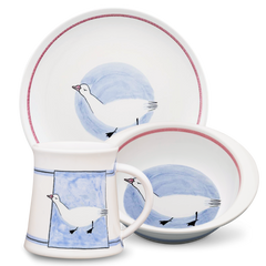 Fayence weiß mit Malerei Gans Glasur glänzend