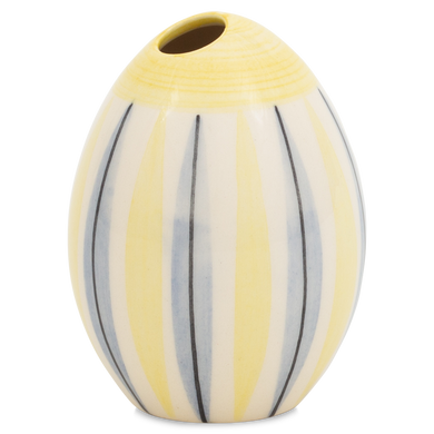 Die Vase „Standei” klein HBW 754A ist ein wahres Schmuckstück für Ihre kreative Frühlings- und Osterdekoration. Mit einer Höhe von 9 cm und einem Durchmesser von 7 cm fügt sie sich perfekt in jedes Arrangement ein – sei es auf dem festlichen Ostertisch oder als charmantes Detail im Wohnraum. Diese handgefertigte Vase aus den traditionsreichen Hedwig Bollhagen Werkstätten verbindet Tradition mit modernen Akzenten und lässt sich wunderbar mit frischen Blüten oder Zweigen bestücken. Das kleine Loch an der Oberseite bietet genau den richtigen Raum, um zarte Blumen stilvoll in Szene zu setzen. Erhältlich in den vielfältigen Dekoren der Kollektionen Varius, Ritz und Fayence, bringt diese Vase Farbe und Stimmung in Ihre Wohnräume. Wenn Sie ein stimmiges Gesamtbild schaffen möchten, lässt sich diese Vase wunderbar mit der größeren Variante (HBW 707138) kombinieren – hervorragend, um Ihre Dekoration abwechslungsreich und elegant zu gestalten.