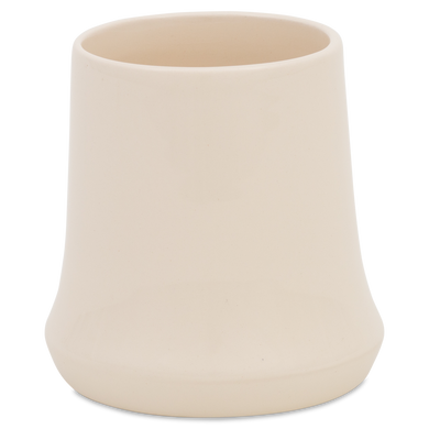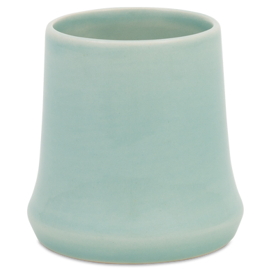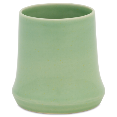 El vaso para zumo de Hedwig Bollhagen, con el número de modelo «485», destaca por su forma clara, sencilla y rústica. Su característica principal es el cuerpo cónico, que se estrecha ligeramente hacia arriba. Al menos en lo que respecta a su capacidad de 0,2 litros, este vaso para zumo podría ser la versión sin asa del vaso «Kanada», con el número de modelo 526. Con un diámetro de ocho centímetros, el vaso para zumo, que mide también ocho centímetros de altura, es tan alto como ancho. Una cosa es segura: ya sean naranjas recién exprimidas, un batido verde o zumo de tomate con pimienta y sal, en el vaso de cerámica de Hedwig Bollhagen, que pesa 160 gramos, se pueden servir con estilo todo tipo de bebidas frías.